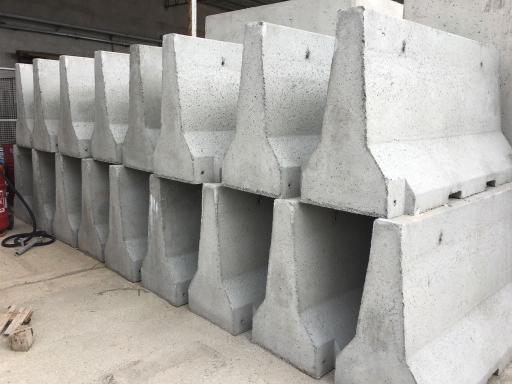 Barriere stradali tipo new jersey per la sicurezza dei cantieri di tipo stradale in calcestruzzo vibrato, non omologati.