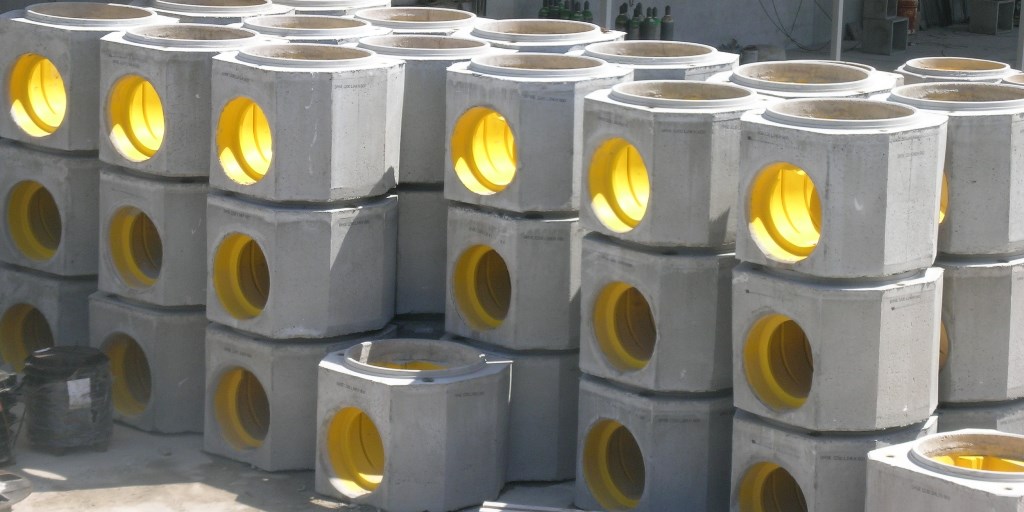 Pozzetti prefabbricati modulari per rete fognaria realizzati in conformità alla norma UNI EN 1917, in calcestruzzo vibrato.